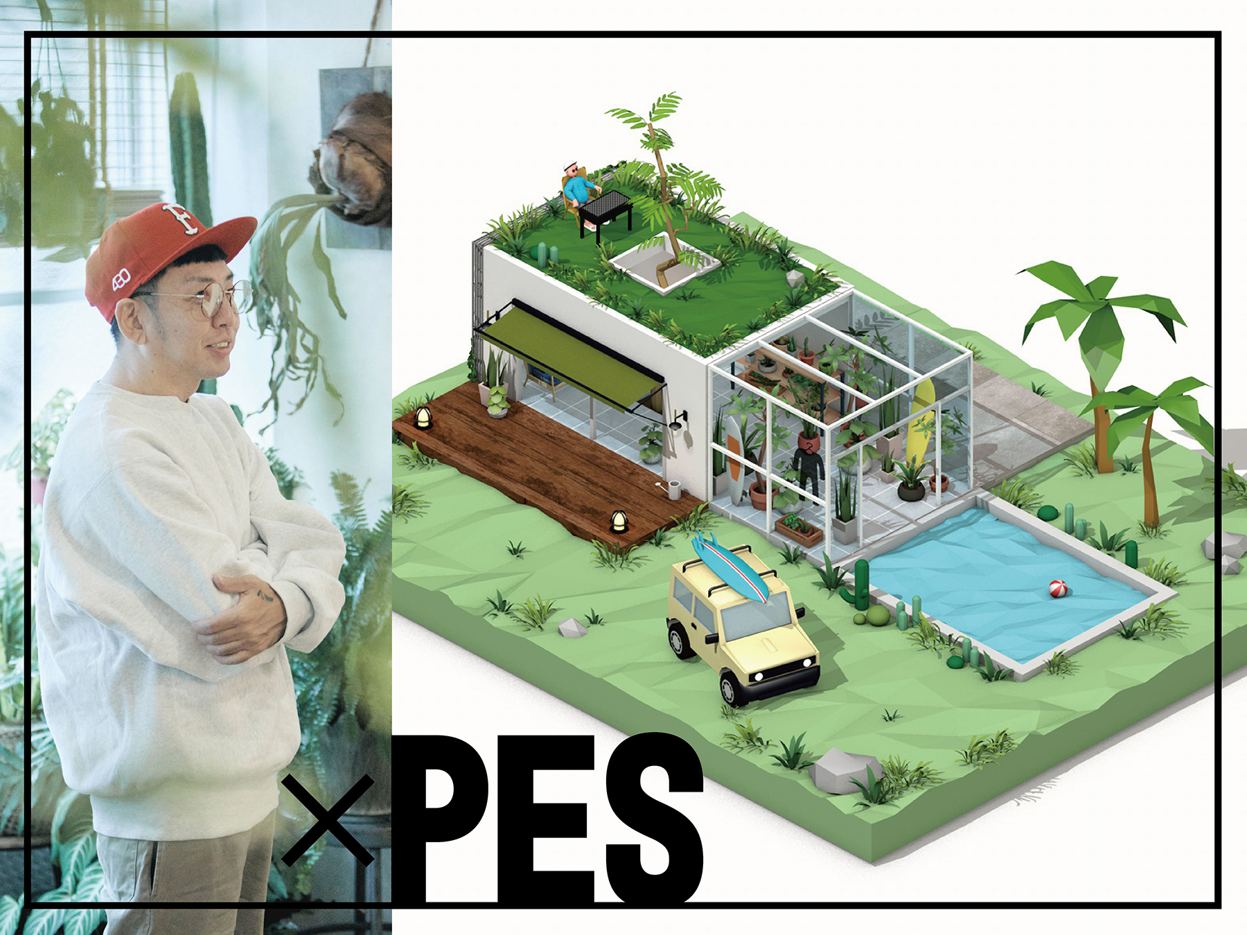HIP HOPアーティストのPESが思い描いたのは、「植物と海と音楽」のための家。自分の好きなものをまっすぐに言葉にしたこの三つのキーワードをもとに、Dolive©が3Dで理想の家を想像しました。