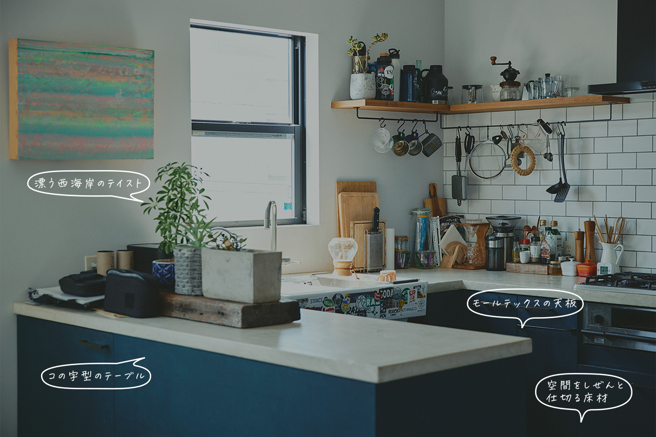 挽きたてのコーヒーがふわりと香るキッチンテーブル。週末、友人を招いてビール片手に語らうアイランド。お気に入り食器やツールを並べて、眺めるだけでニヤリとしてしまう棚。