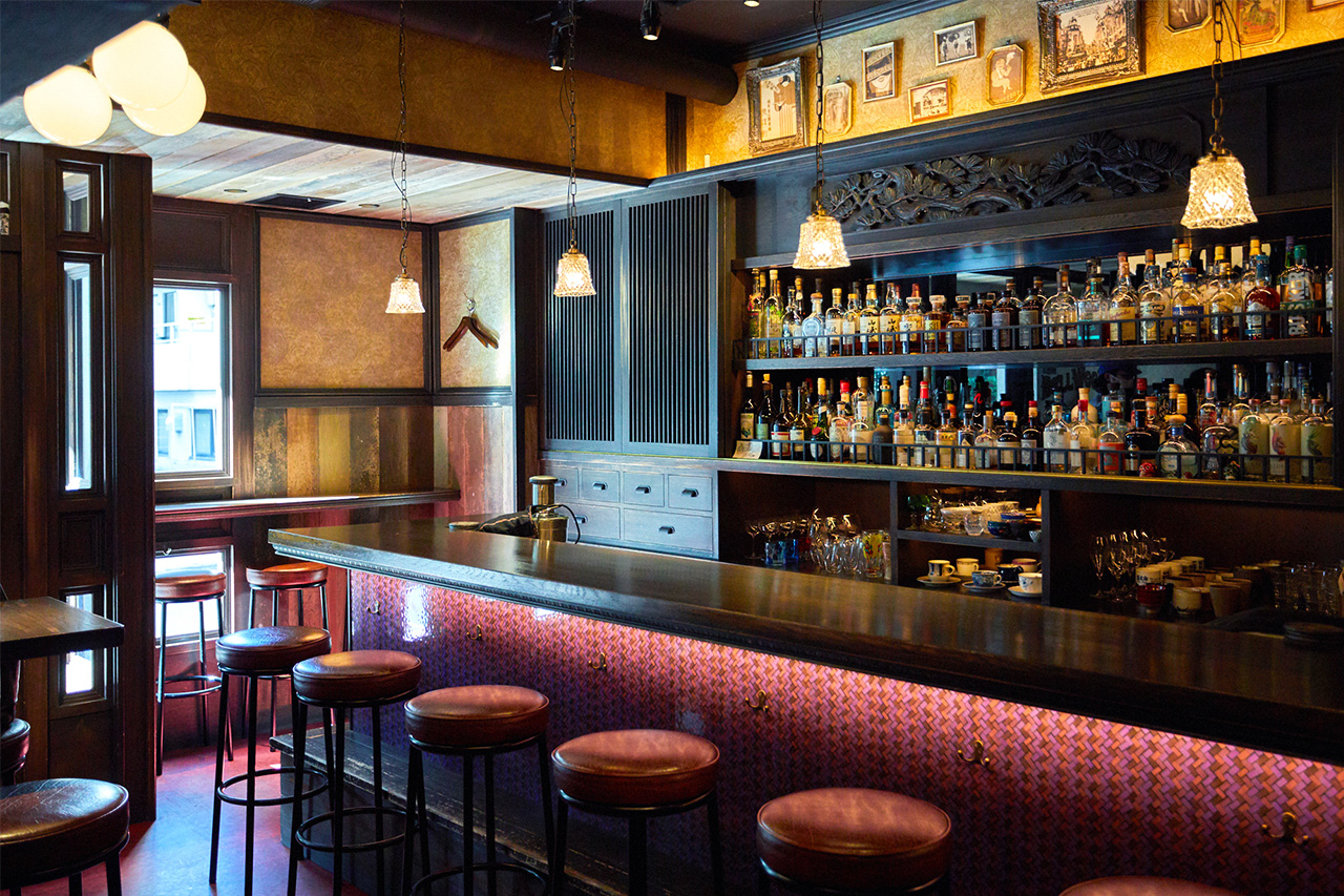 渋谷にあるバー「THE BELLWOOD」のレトロモダンな空間。あえてアンティークを使わず、現代の素材にエイジング加工を施した木材や、ヨーロッパの壁紙、現行品の幾何学模様パネルを組み合わせることで、唯一無二の世界観を構築しています。「和」という枠組みの中で、ストーリー性のある装飾をどう楽しむかのヒントが詰まっています。